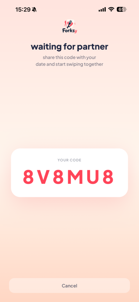 Tap “Date Night” in the app. You get a 6-letter code to share with your partner.